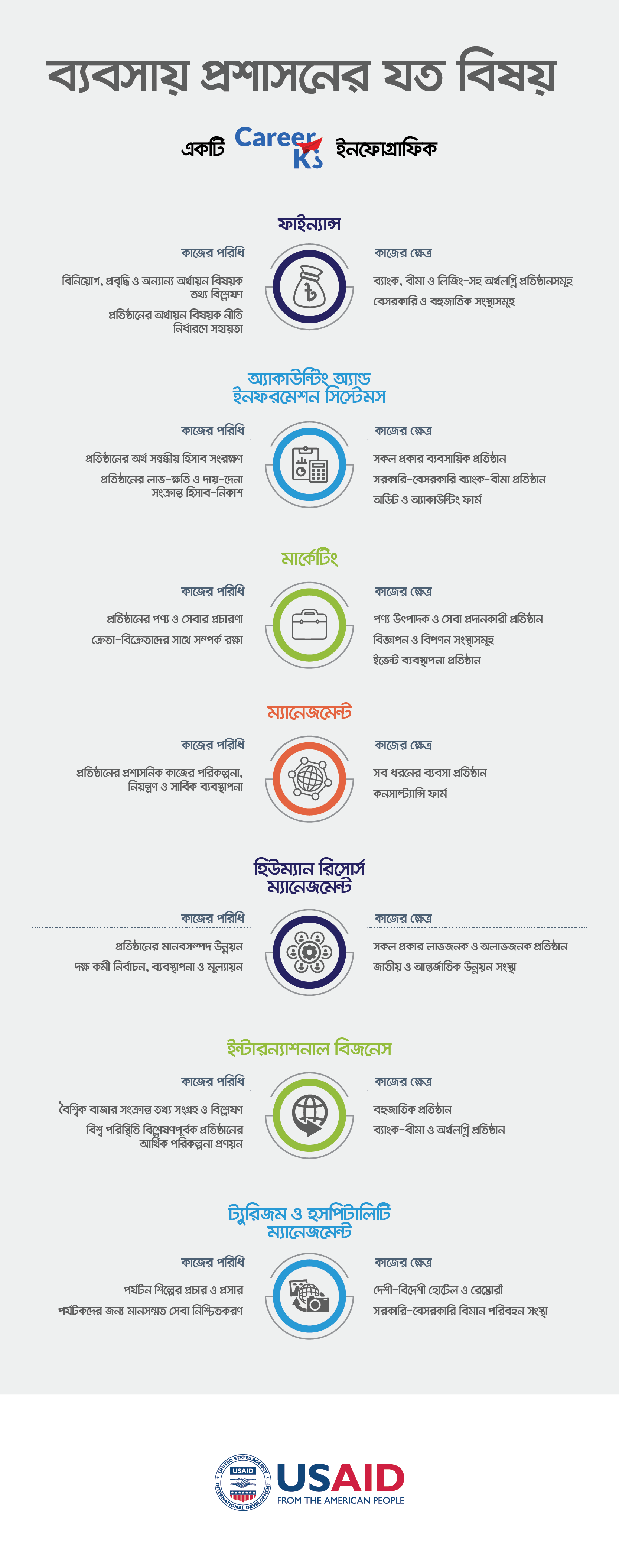 ব্যবসায় প্রশাসনের যত বিষয়: ক্যারিয়ার ইনফোগ্রাফিকআমরা চেষ্টা করেছি ইনফোগ্রাফিকের তথ্যে কোন ভুল না রাখতে। এরপরও কোন ভুল ধরা পড়লে আমাদের সাথে যোগাযোগ করার অনুরোধ করা হলো। চাইলে ফেসবুকেও মেসেজ দিতে পারেন।